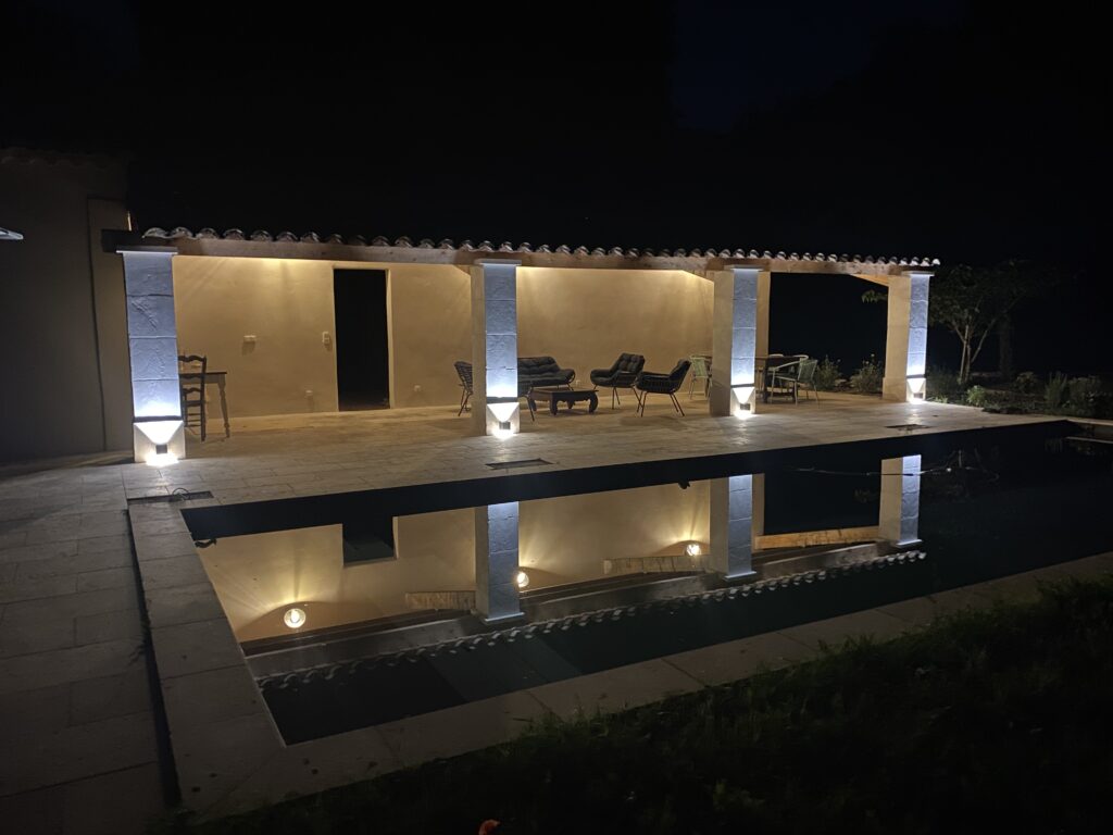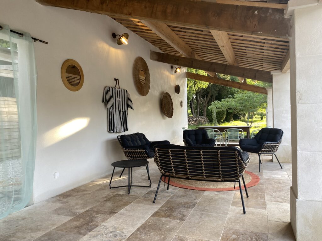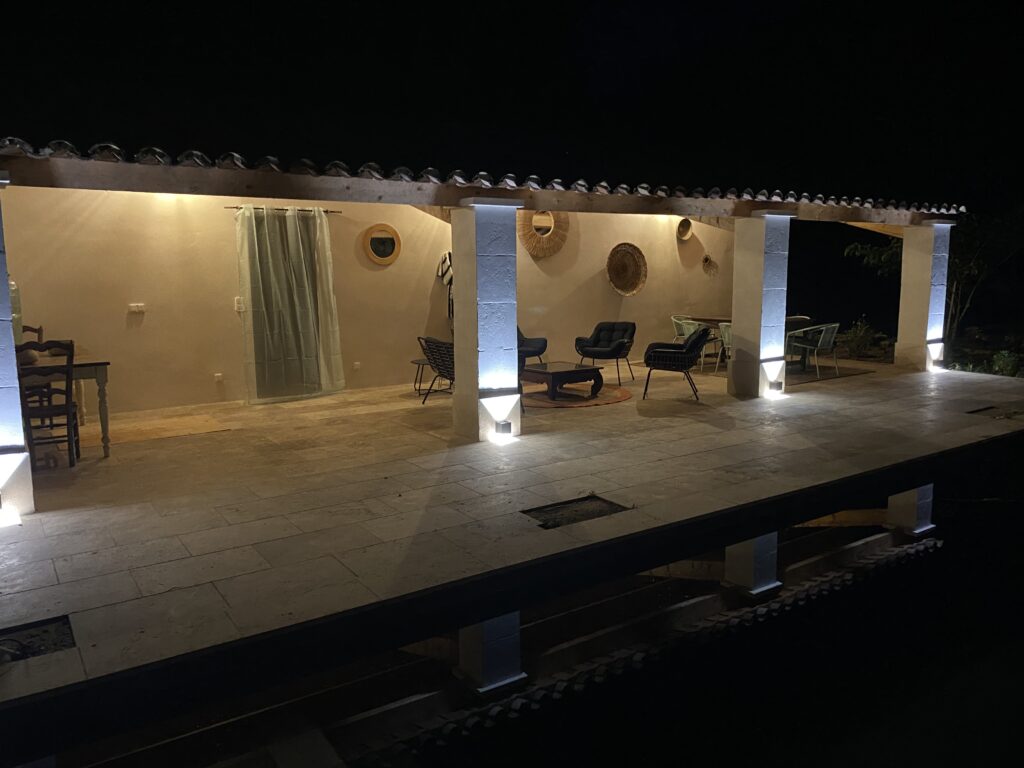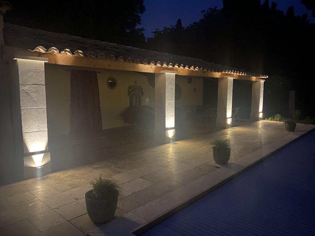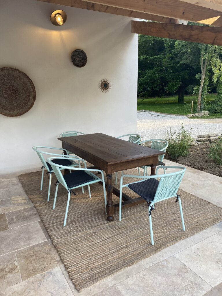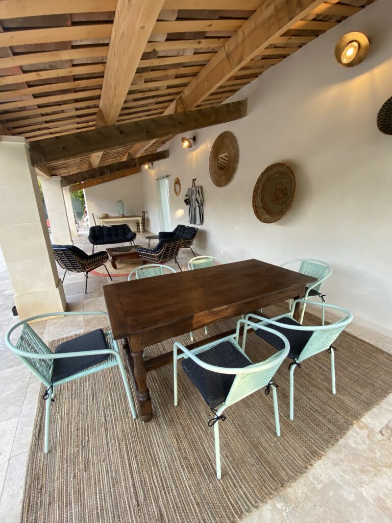 Les espaces extérieurs ont été pensés comme de véritables lieux de vie. On y déjeune après le marché, on prolonge les fins de journée autour d’un apéritif, on dîne sous le ciel provençal lorsque la chaleur retombe. Chaque recoin de la propriété invite à ralentir, à profiter de la lumière, des senteurs et du silence, dans une atmosphère intime et élégante.