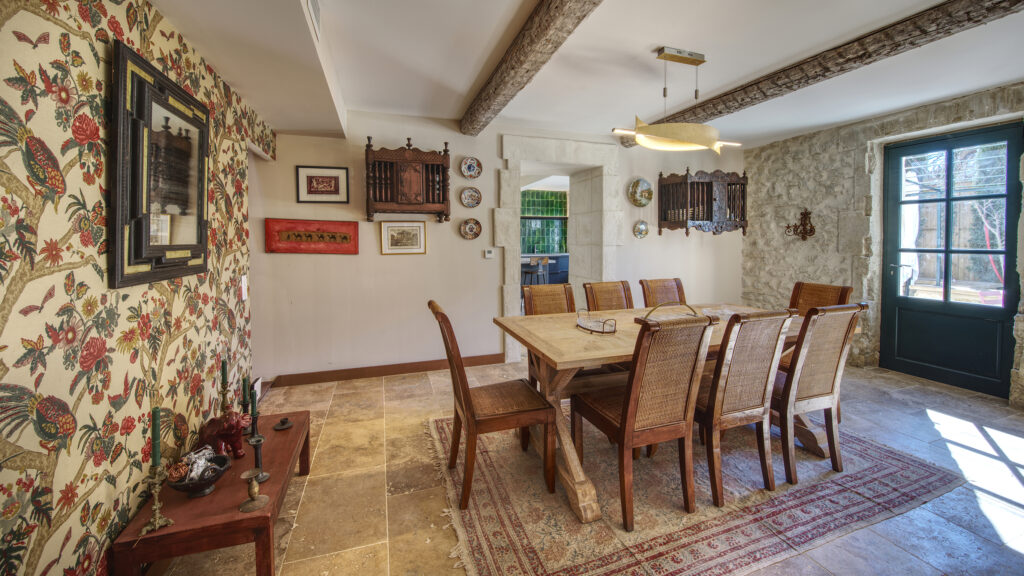 Pensés pour offrir fraîcheur en été et confort le reste de l’année, les espaces intérieurs du Mas du Grand Chêne bénéficient de la climatisation, de l’épaisseur des murs en pierre et du calme absolu de la propriété. Ils font de cette maison de vacances à Saint-Rémy-de-Provence un lieu idéal pour vivre la Provence en toute sérénité, dans un cadre élégant et authentique.