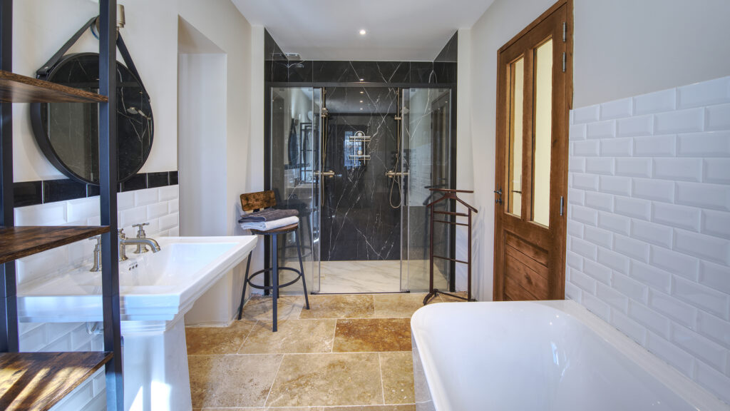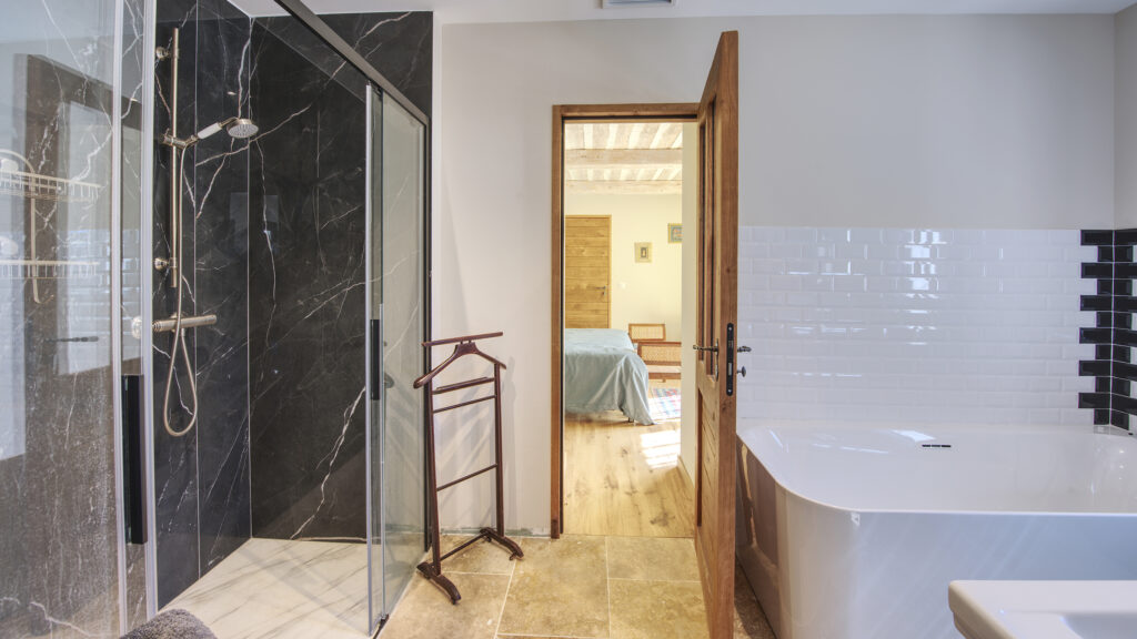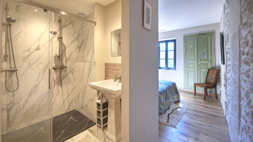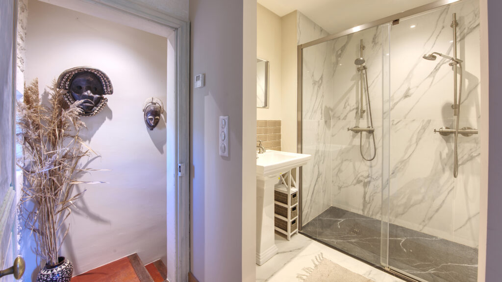Chaque chambre dispose de sa propre salle de bain privative et de toilettes séparées, garantissant un niveau de confort rare pour une maison de vacances en Provence. Les volumes généreux, les matériaux nobles, la climatisation et le silence environnant invitent à ralentir, à se reposer et à profiter pleinement du séjour, quelle que soit la saison.
