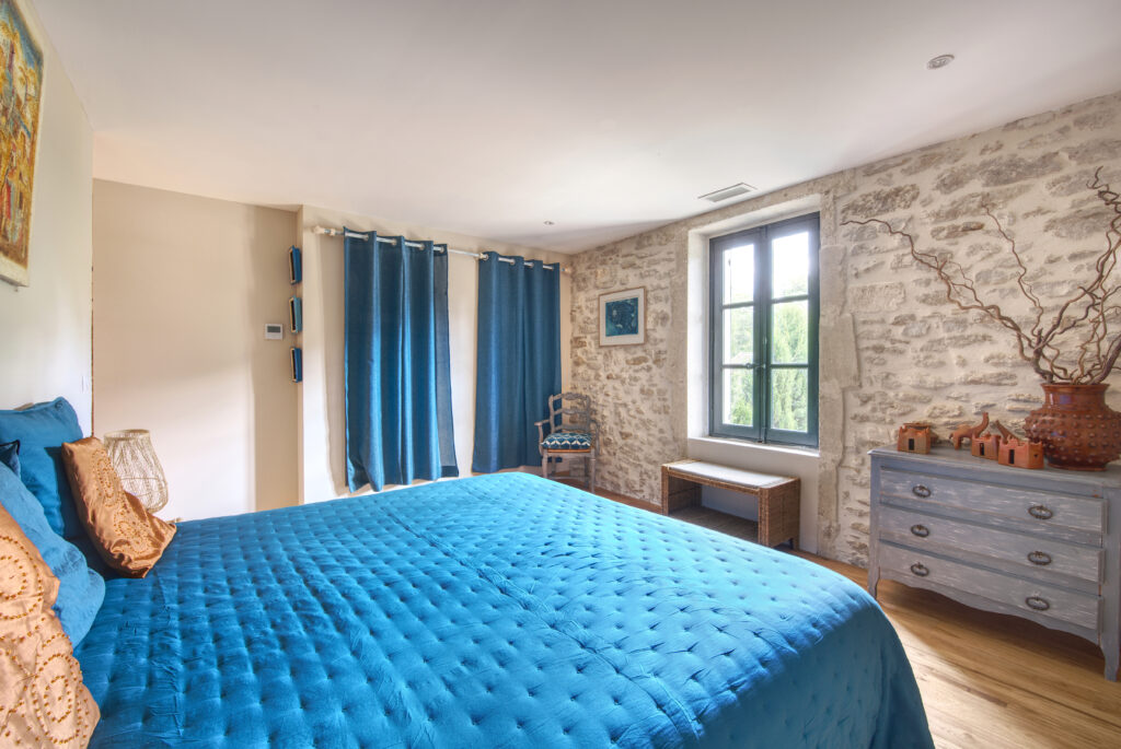 Les murs en pierre, l’épaisseur des bâtis, la hauteur sous plafond et les ouvertures généreuses créent une atmosphère naturellement fraîche et apaisante. La maison respire. Elle protège de la chaleur estivale et offre, en toute saison, un confort rare pour un mas en Provence.